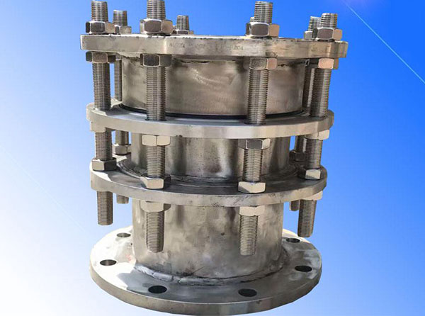 可拆式雙法蘭傳力接頭是有松套伸縮接頭和短管法蘭、傳力螺桿等構(gòu)件組成,它能傳遞被連接件的壓力推力(盲板力)和補償管路誤差,并且具有一定的調(diào)節(jié)量,方便實際的施工環(huán)境進行調(diào)整。